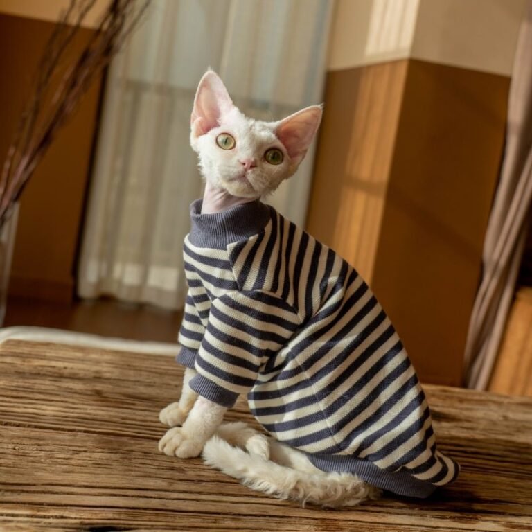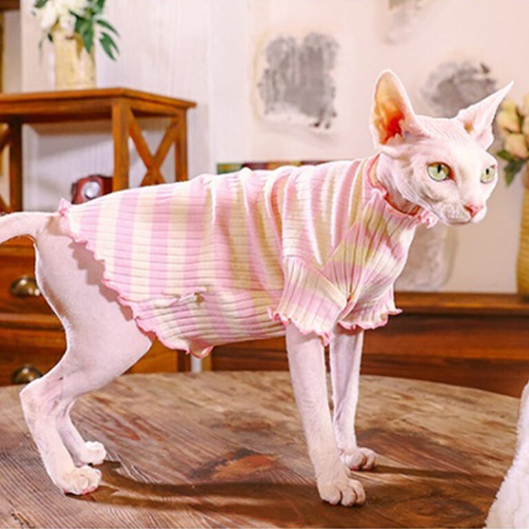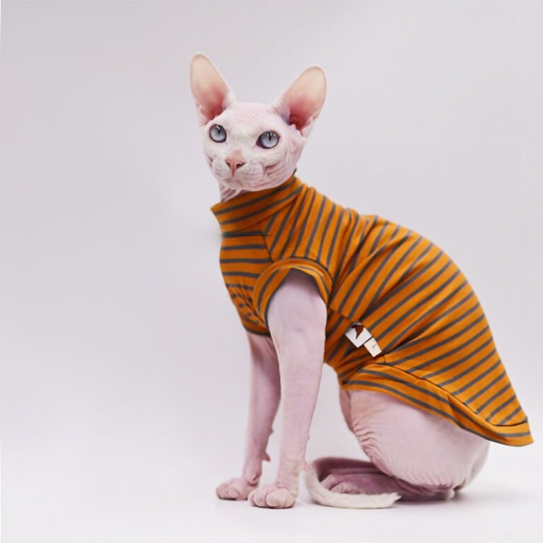 Striped Cat Turtleneck – Warm Cotton Base Layer Shirt for Hairless Sphynx Cats