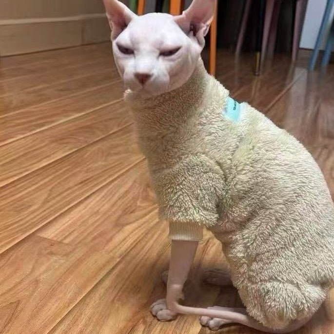Sphynx Cat Fleece Sweatshirt – Cotton-Lined Sherpa Pullover for Hairless Cats