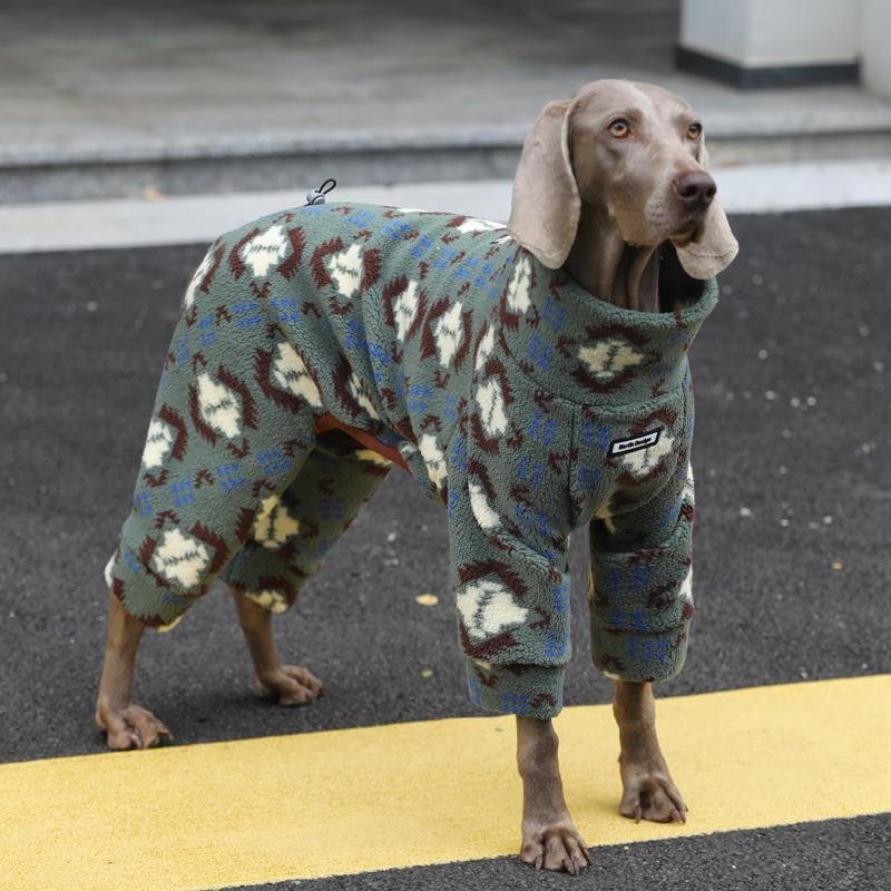 Geometric Print Fleece Jumpsuit – Four-Leg Thermal Pajamas for Big Dogs